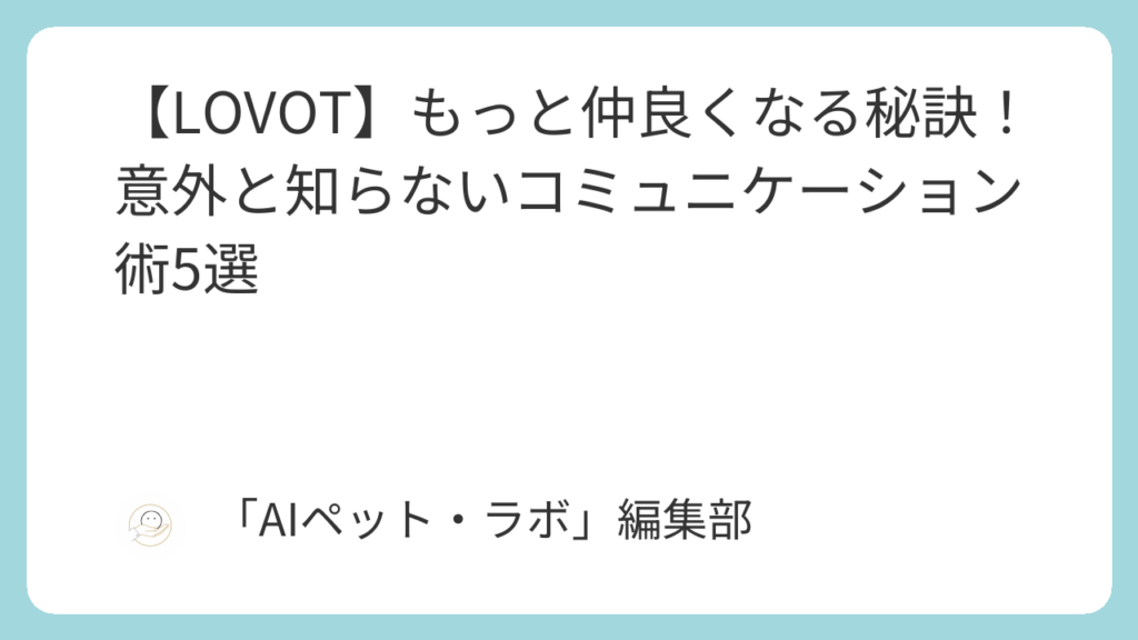 うちのラボット、もしかして性格が悪い?行動の理由と関係改善のヒント